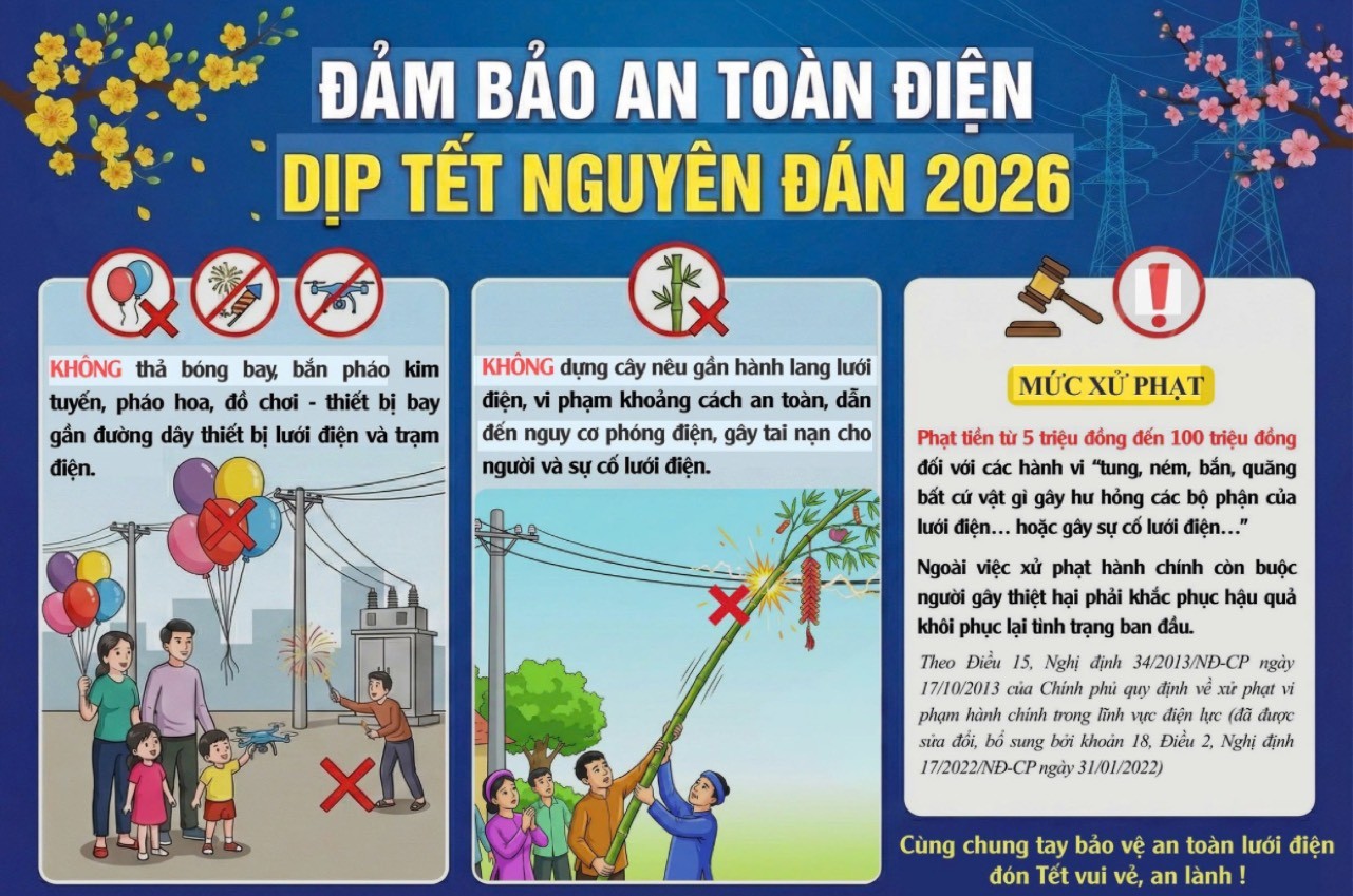Mỗi người dân cần nâng cao ý thức chấp hành quy định về bảo vệ hành lang an toàn lưới điện, góp phần đảm bảo cung cấp điện ổn định, liên tục phục vụ Nhân dân vui Xuân, đón Tết Bính Ngọ an toàn, hạnh phúc.