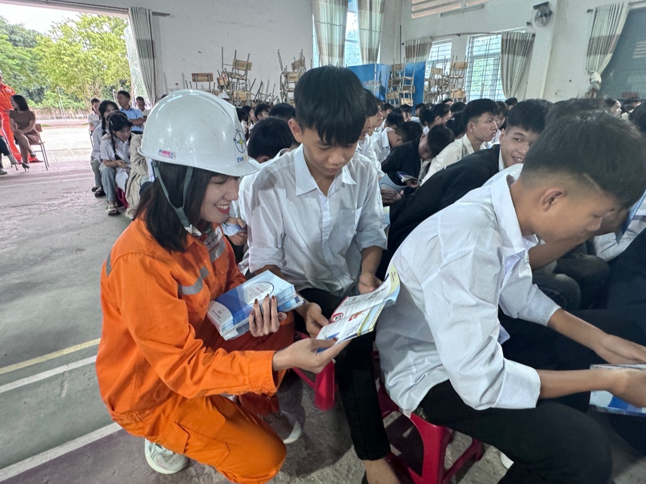 Bên cạnh đó, học sinh còn được tham gia trả lời trực tiếp các câu hỏi liên quan đến kiến thức an toàn, tiết kiệm điện. Hoạt động bổ ích này giúp các em học sinh từ nắm bắt kiến thức ban đầu đến hình thành và chuyển biến nhận thức, hành động, thể hiện được vai trò, trách nhiệm đối với các nguồn năng lượng điện, đồng thời mỗi em sẽ là một tuyên truyền viên tích cực lan tỏa những thông điệp ý nghĩa đến gia đình, người thân, bạn bè và cộng đồng về sử dụng điện an toàn-tiết kiệm-hiệu quả, bảo vệ an toàn hành lang lưới điện cao áp...