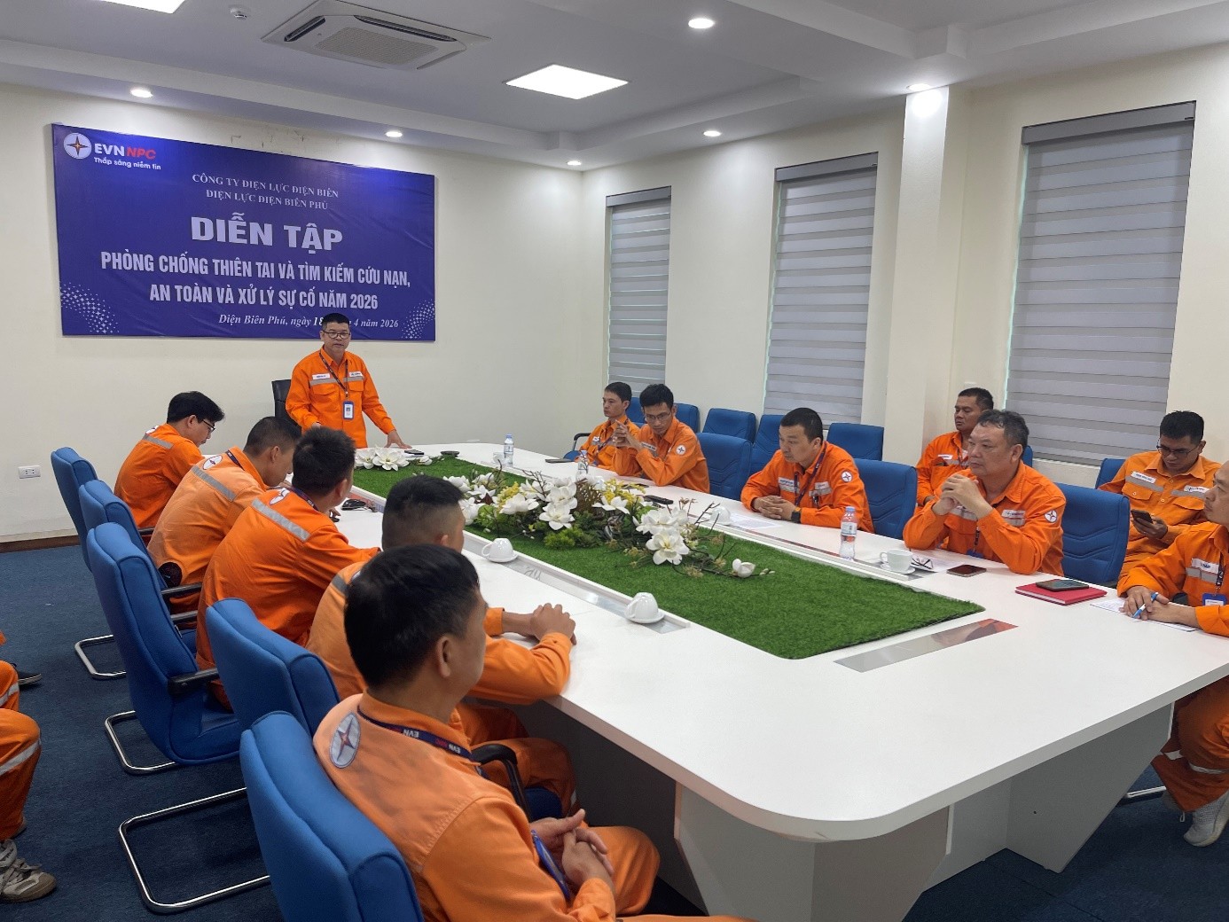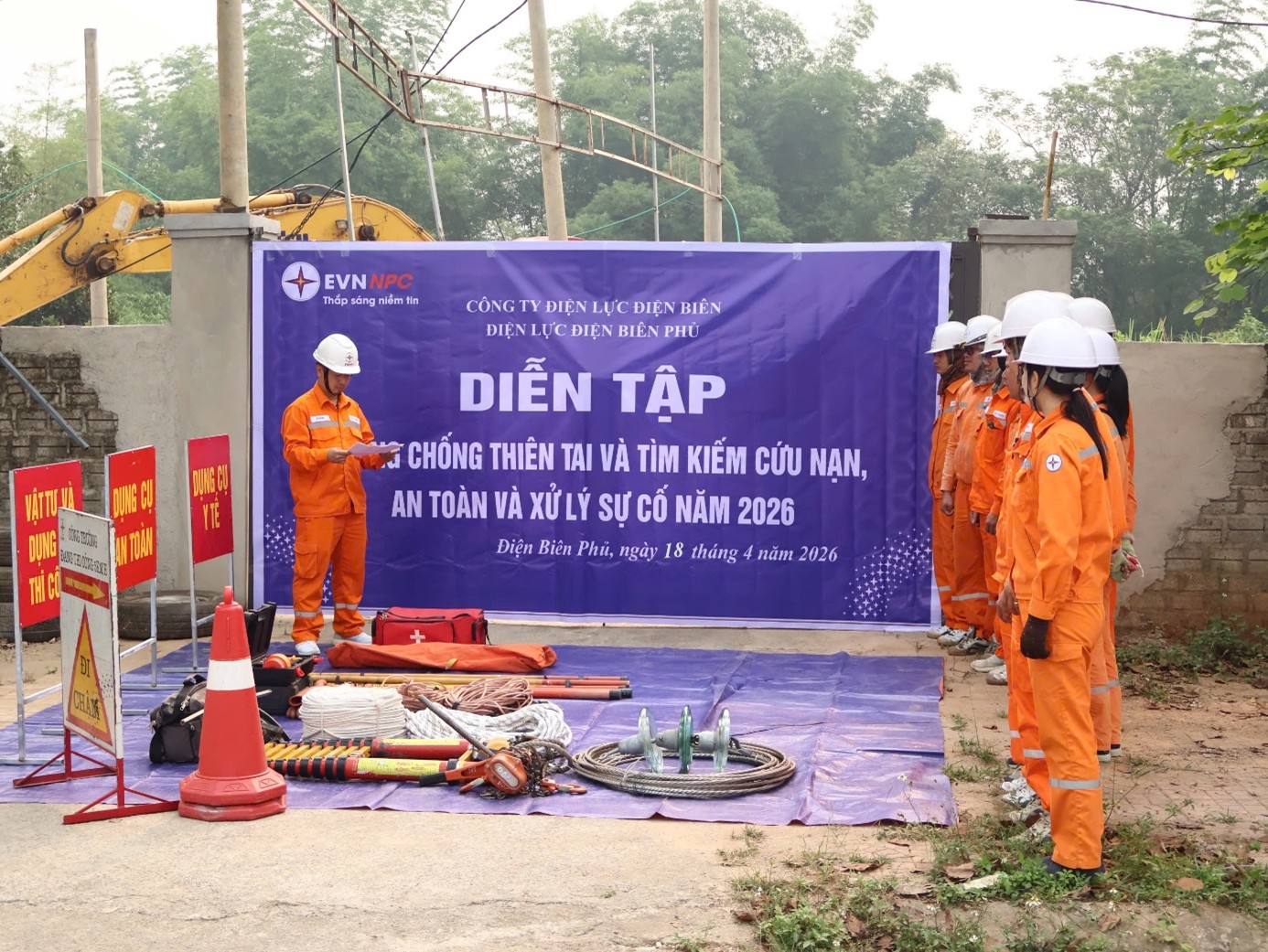 Nhằm nâng cao năng lực phản ứng nhanh và đảm bảo vận hành lưới điện an toàn trước mùa mưa bão, ngày 18/04/2026, Điện lực Điện Biên Phủ đã tổ chức chương trình diễn tập phòng, chống thiên tai và tìm kiếm cứu nạn (PCTT&TKCN), kết hợp huấn luyện an toàn và xử lý sự cố.